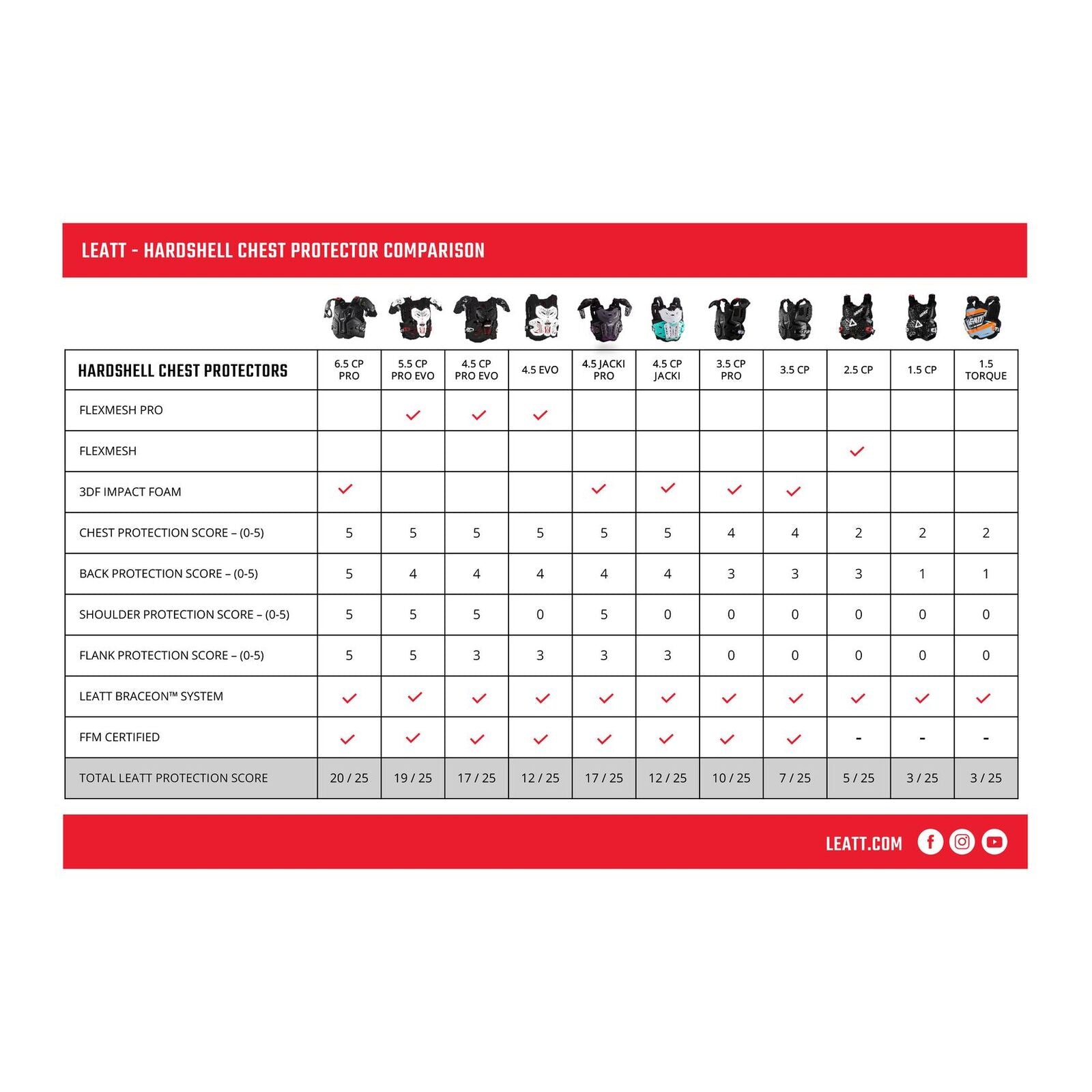 • Total Leatt® protection score of 19 points.